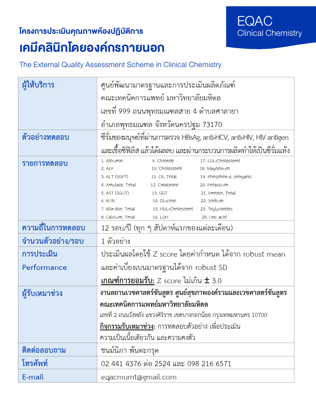 โครงการประเมินคุณภาพห้องปฏิบัติการเคมีคลินิกโดยองค์กรภายนอก